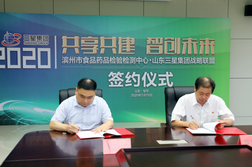 7月15日,“共享共建 智創(chuàng)未來”濱州市食品藥品檢驗(yàn)檢測中心·山東三星集團(tuán)戰(zhàn)略聯(lián)盟簽約儀式圓滿落幕。雙方就“結(jié)對共建 資源共享 攜手共贏”達(dá)成共識,共同探討雙方共建的合作模式和運(yùn)行機(jī)制,實(shí)現(xiàn)檢驗(yàn)機(jī)構(gòu)—企業(yè)雙方共同發(fā)展。濱州市食品藥品檢驗(yàn)檢測中心主任韓家忠、副主任郭宇鵬,鄒平市市場監(jiān)督管理局副局長劉璽明,山東三星集團(tuán)董事長王明峰、副總經(jīng)理孫喜、技術(shù)研發(fā)中心總監(jiān)王月華等出席活動。