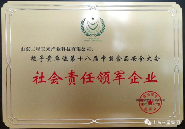 作為中國高端健康廚房食品標(biāo)桿企業(yè),憑借在食品安全、科技創(chuàng)新等方面的突出成績,山東三星集團(tuán)再獲多項(xiàng)大獎,旗下玉米產(chǎn)業(yè)公司獲評社會責(zé)任領(lǐng)軍企業(yè)、2019—2020食品安全誠信單位、2019—2020食品安全管理創(chuàng)新二十佳案例,山東三星集團(tuán)總經(jīng)理王明星獲評社會責(zé)任優(yōu)秀企業(yè)家、食品安全普法先進(jìn)工作者。
