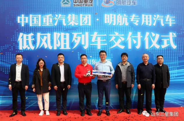4月20日,中國重汽集團(tuán)·明航專用汽車低風(fēng)阻列車交車儀式在山東三星機(jī)械制造有限公司隆重舉行。中國重汽集團(tuán)相關(guān)領(lǐng)導(dǎo),鋁谷產(chǎn)業(yè)技術(shù)研究院院長雷浩,山東三星集團(tuán)董事長王明峰、副總經(jīng)理孫喜、山東三星機(jī)械制造有限公司總經(jīng)理張恒及集團(tuán)相關(guān)部門主要負(fù)責(zé)人參加活動(dòng)。