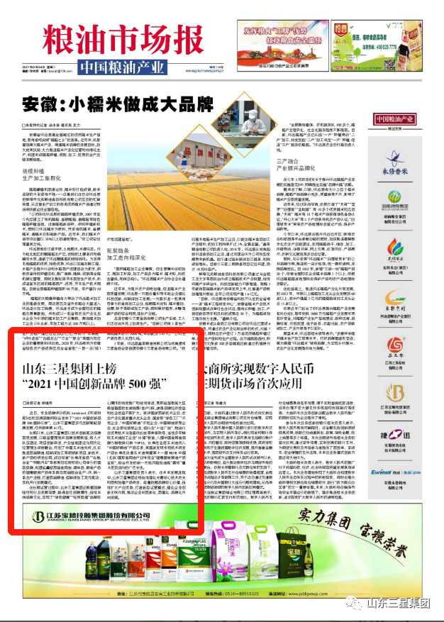 山東三星集團(tuán)負(fù)責(zé)人表示,未來(lái),山東三星集團(tuán)將繼續(xù)聚焦實(shí)業(yè),做精主業(yè),拓寬創(chuàng)新思維,增強(qiáng)創(chuàng)新能力和核心競(jìng)爭(zhēng)力,推進(jìn)綠色低碳發(fā)展、數(shù)字化轉(zhuǎn)型發(fā)展,以產(chǎn)業(yè)高質(zhì)量發(fā)展助力鄉(xiāng)村振興,為山東經(jīng)濟(jì)社會(huì)發(fā)展貢獻(xiàn)民企新?lián)?dāng)。(原文刊登于2021年8月24日糧油市場(chǎng)報(bào)中國(guó)糧油產(chǎn)業(yè))