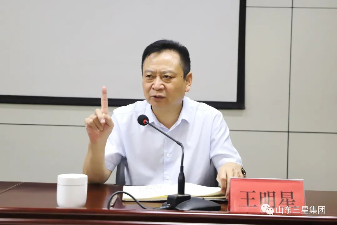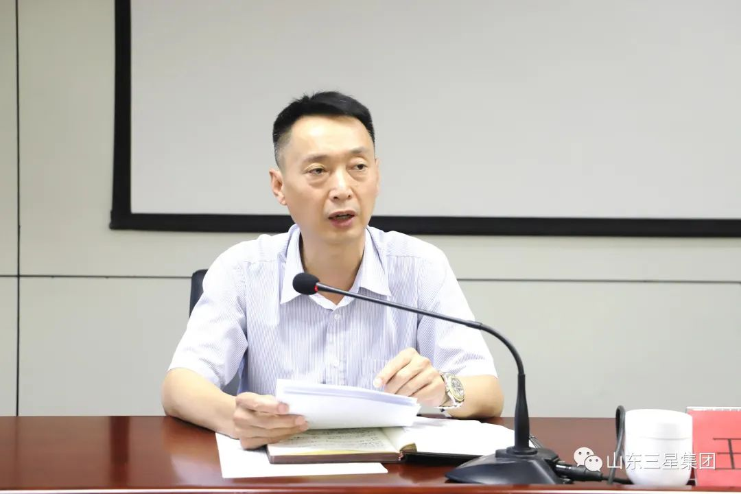 山東三星集團總經(jīng)理王明星首先就行業(yè)發(fā)展形勢及企業(yè)生產(chǎn)經(jīng)營現(xiàn)狀進行總結研判,明確當前企業(yè)生產(chǎn)經(jīng)營沖刺要點及任務部署。