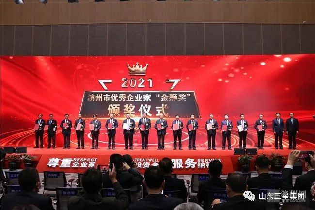 會議同時宣讀了《中共濱州市委、濱州市人民政府關(guān)于授予2021濱州市優(yōu)秀企業(yè)家“金獅獎”“銀獅獎”“銅獅獎”和富強濱州建設(shè)“金星獎”及公布濱州市“智能化綠色化技改十大優(yōu)秀案例”名單的決定》,隆重表彰優(yōu)秀企業(yè)家和獲獎單位,山東三星集團總經(jīng)理王明星榮獲2021濱州市優(yōu)秀企業(yè)家“金獅獎”。