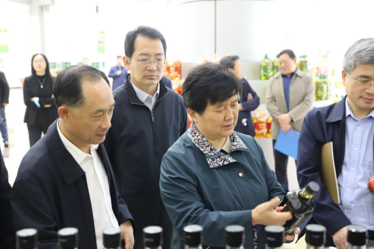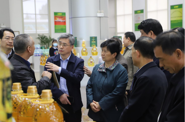 在長(zhǎng)壽花產(chǎn)品展廳,楊麗麗一行對(duì)企業(yè)在優(yōu)質(zhì)糧油產(chǎn)品創(chuàng)新研發(fā)、糧油產(chǎn)業(yè)健康發(fā)展等方面的經(jīng)驗(yàn)做法進(jìn)行了詳細(xì)了解。