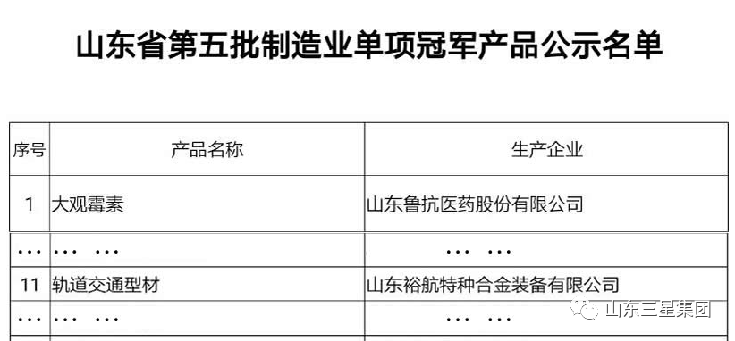 近日,山東省工業(yè)和信息化廳對第五批山東省制造業(yè)單項冠軍企業(yè)和產(chǎn)品名單進(jìn)行公示,山東三星集團(tuán)裕航合金軌道交通型材被認(rèn)定為制造業(yè)單項冠軍產(chǎn)品。