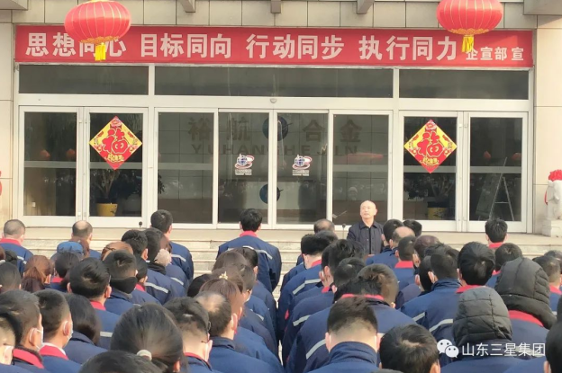 2月7日,農(nóng)歷正月初七,山東三星集團開工第一天,集團黨總支書記、老董事長王明峰深入各分公司,開講“收心復(fù)位再奮發(fā) 凝心聚力向未來”開工第一課,激勵全員以堅如磐石的信念、滴水石穿的韌勁、舍我其誰的擔(dān)當(dāng)力和責(zé)任感投入到新一年的工作中來。山東三星集團各單位全體干部員工整體列隊、學(xué)習(xí)講話。