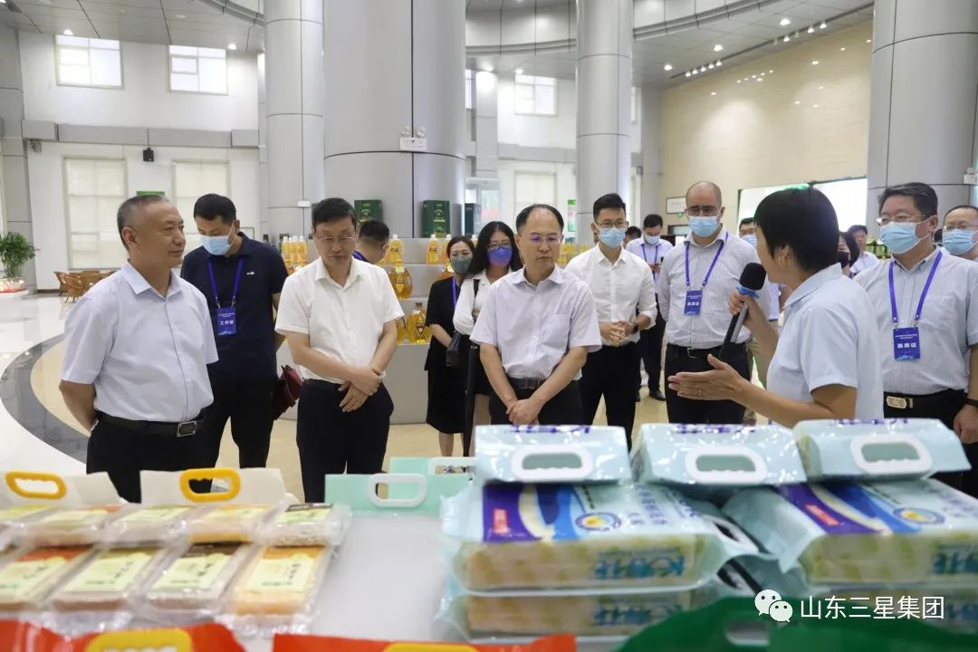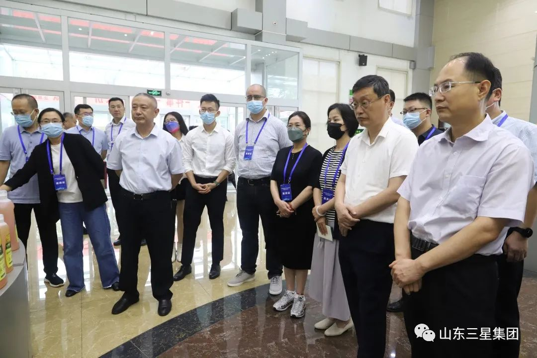 8月9日上午,山東省貿(mào)促會黨組成員、副會長賀忠軍,新加坡金鷹集團(tuán)中國區(qū)副總裁趙勇率山東省國際貿(mào)易和投資顧問齊魯沿黃城市行顧問團(tuán)來山東三星集團(tuán)參觀考察。濱州市政協(xié)黨組成員、副主席王道臣,濱州市貿(mào)促會黨組書記展翼;鄒平市委副書記孫東平、鄒平市政協(xié)副主席田德民、鄒平市貿(mào)促會會長董峰,韓店鎮(zhèn)黨委書記邢錦凱參加活動。山東三星集團(tuán)黨總支書記、老董事長王明峰接待調(diào)研領(lǐng)導(dǎo)一行。