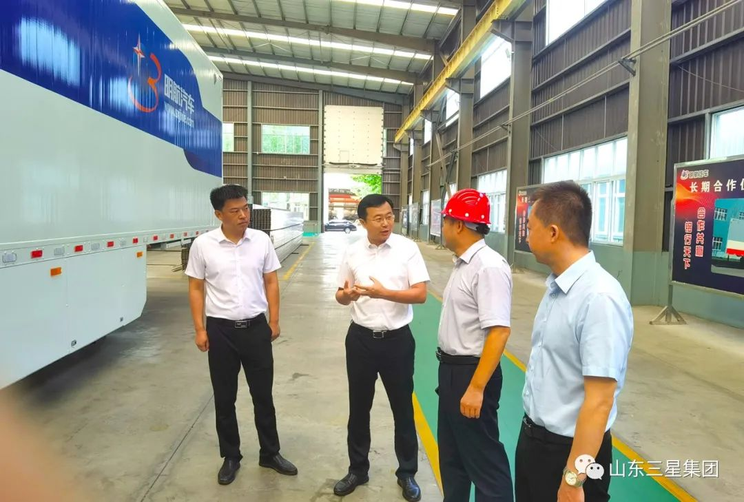8月24日,鄒平市委副書記孫東平就企業(yè)經(jīng)營情況來山東三星集團調(diào)研,韓店鎮(zhèn)黨委副書記、鎮(zhèn)長魏傳梁參加活動,山東三星集團綜合管理部總監(jiān)韓延庭接待調(diào)研領(lǐng)導。