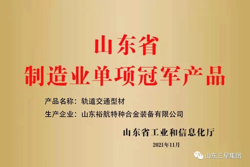 其系列軌道交通型材被認(rèn)定為山東省制造業(yè)單項(xiàng)冠軍產(chǎn)品。