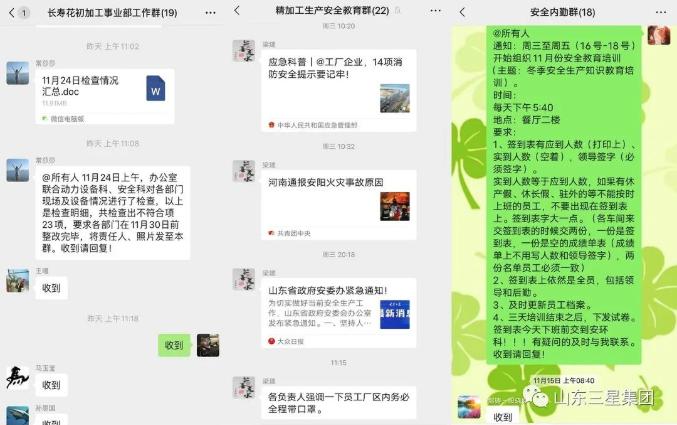 此外,山東三星集團(tuán)還積極發(fā)揮宣傳教育優(yōu)勢效能,充分利用班前班后會、微信群對全員進(jìn)行“防火防凍 防寒 防中毒”安全知識培訓(xùn)教育,切實(shí)增強(qiáng)全員安全防范意識和應(yīng)急處置能力,引導(dǎo)全員時(shí)刻繃緊安全弦,共同為企業(yè)營造安全穩(wěn)健運(yùn)營環(huán)境,強(qiáng)健安全生產(chǎn)管理根基。