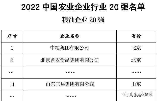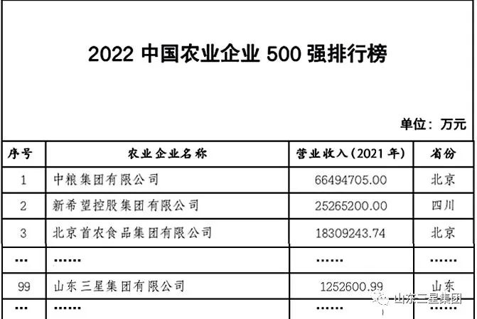 近期,“2022中國農(nóng)業(yè)企業(yè)500強”榜單出爐。山東三星集團榮登榜單,位列99位,兼列“糧油企業(yè)20強”第11位。