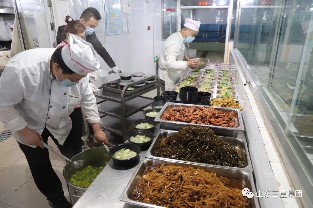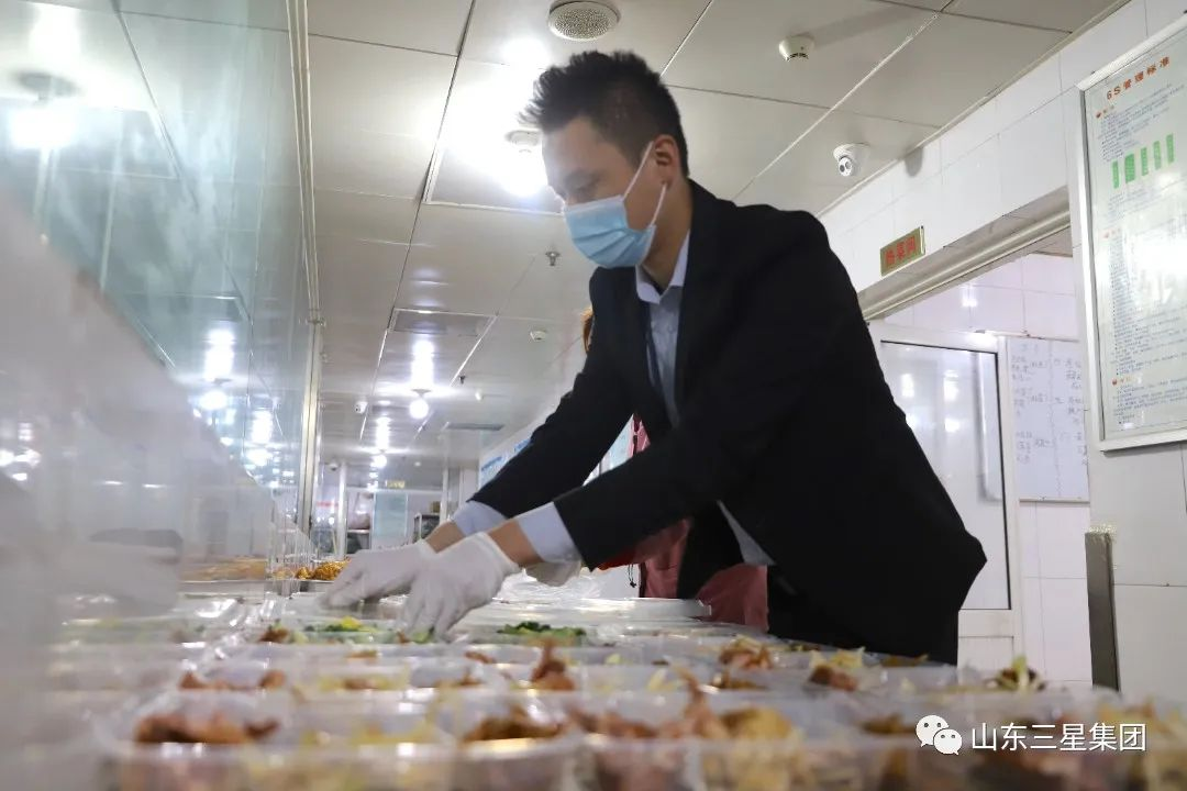 11月下旬,鄒平疫情散發(fā),山東三星集團總部150余名干部員工緊急趕赴公司,開啟24小時駐廠模式。此時此刻,穩(wěn)產(chǎn)保供是重中之重,保障駐廠人員的三餐供應(yīng)也是首要任務(wù)。趙龍帶領(lǐng)團隊快速盤點儲存食材,聯(lián)絡(luò)供貨渠道,做好細致分工責(zé)任落實……一切工作按部就班開展起來,150名干部員工也過上了“早餐蛋奶充足 午晚餐葷素管夠”的駐廠生活。