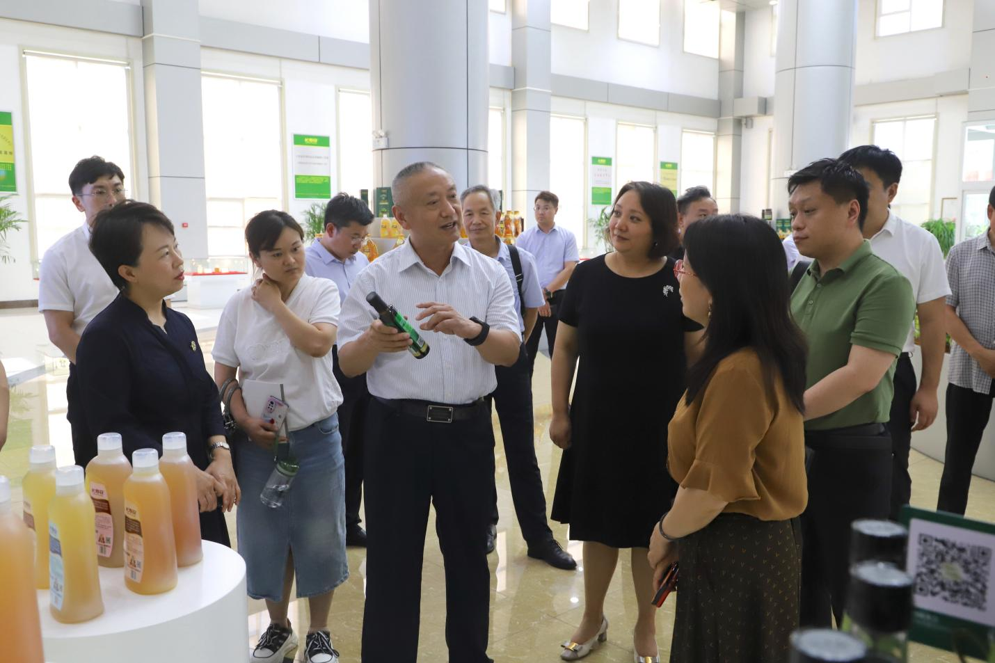 調(diào)研領(lǐng)導(dǎo)走進(jìn)長(zhǎng)壽花食品綠色生產(chǎn)基地,實(shí)地參觀長(zhǎng)壽花產(chǎn)品展廳、全自動(dòng)灌裝包裝生產(chǎn)車間,詳細(xì)了解企業(yè)產(chǎn)品結(jié)構(gòu)、產(chǎn)業(yè)轉(zhuǎn)型升級(jí)、高新技術(shù)研發(fā)等方面工作。