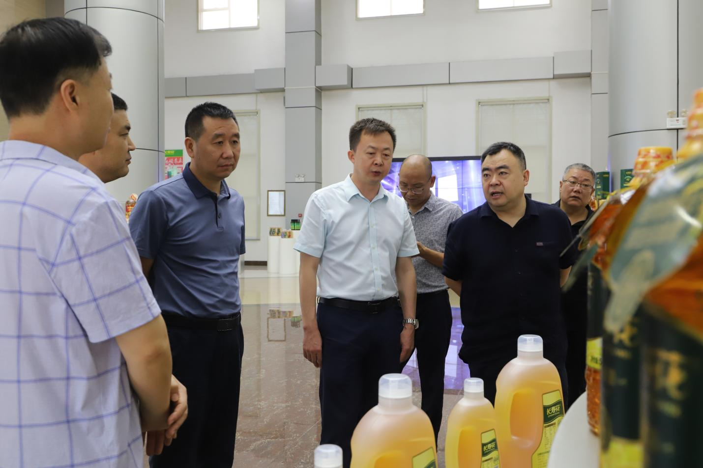 在長壽花食品綠色產(chǎn)業(yè)基地,考察領導詳細了解企業(yè)生產(chǎn)經(jīng)營、項目建設、技術創(chuàng)新等情況,并著重就農(nóng)產(chǎn)品加工全產(chǎn)業(yè)鏈建設與企業(yè)領導做深入交流。