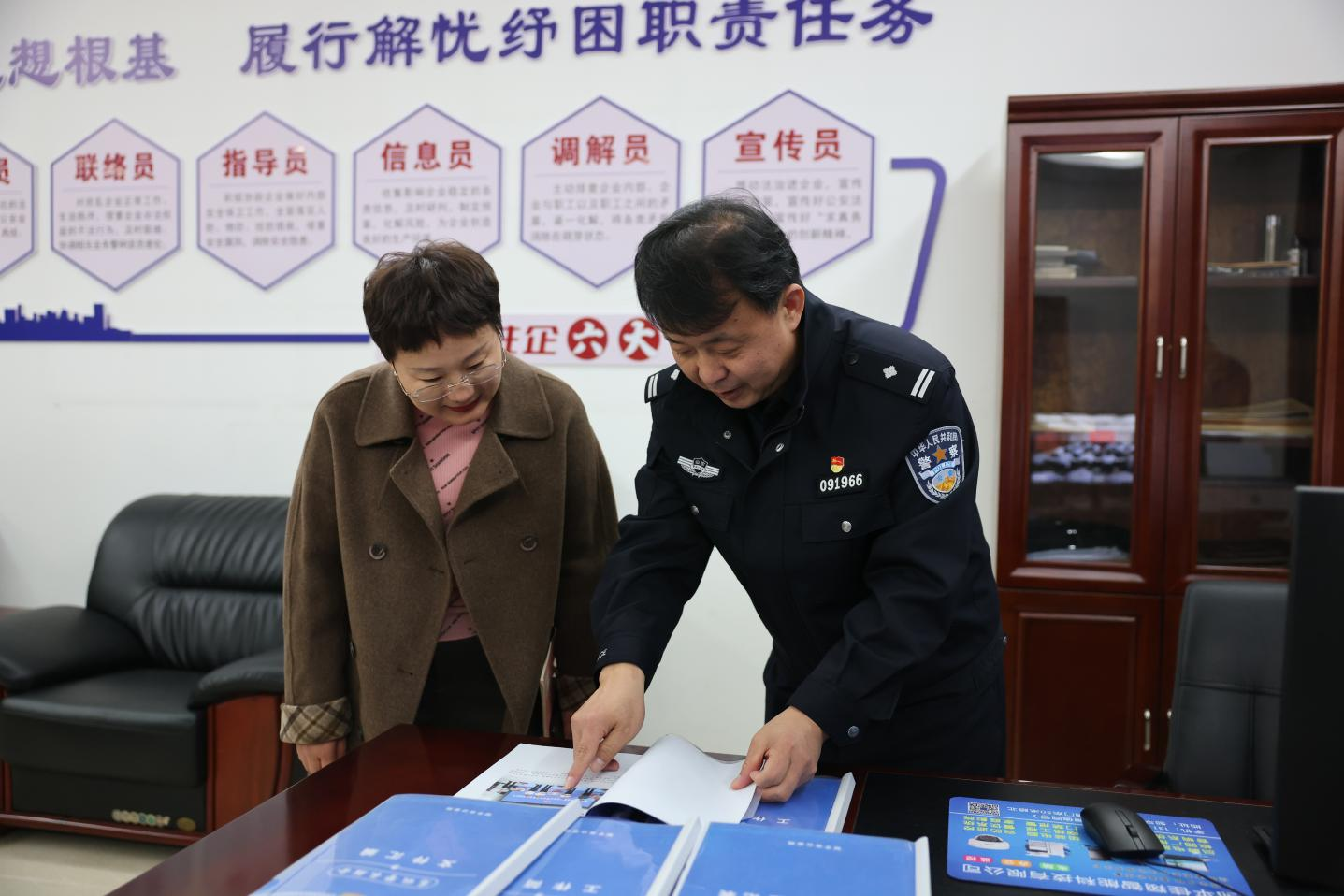 期間,趙建軍詳細(xì)介紹駐企警務(wù)全科服務(wù)站人員構(gòu)成、服務(wù)內(nèi)容及機(jī)制運(yùn)轉(zhuǎn)情況,孫穎細(xì)致講述兩位高級(jí)警長(zhǎng)的駐企成果和工作成效。“依法有法辦 有法依法辦”“靠前一步 主動(dòng)作為”的駐企理念、“溫暖貼心 務(wù)實(shí)高效”的駐企成果、“警企攜手 發(fā)展共贏”的共創(chuàng)氛圍得到人民公安報(bào)山東記者站采訪一部主任孫麗麗的高度贊賞。