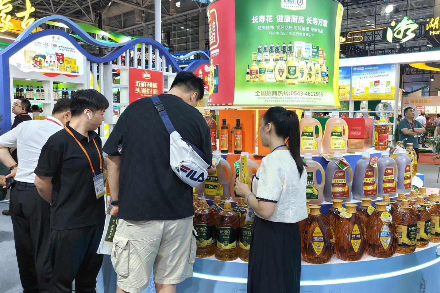 本次展會,長壽花攜帶二酯菜籽油、二酯多多玉米油、二酯多多花生油、高谷維稻米油等家庭健康廚房系列產(chǎn)品參展,專業(yè)銷售為客戶細(xì)心講解場景解決方案,迎來了全國各地專業(yè)人士及當(dāng)?shù)孛癖?b>駐足交流與咨詢。