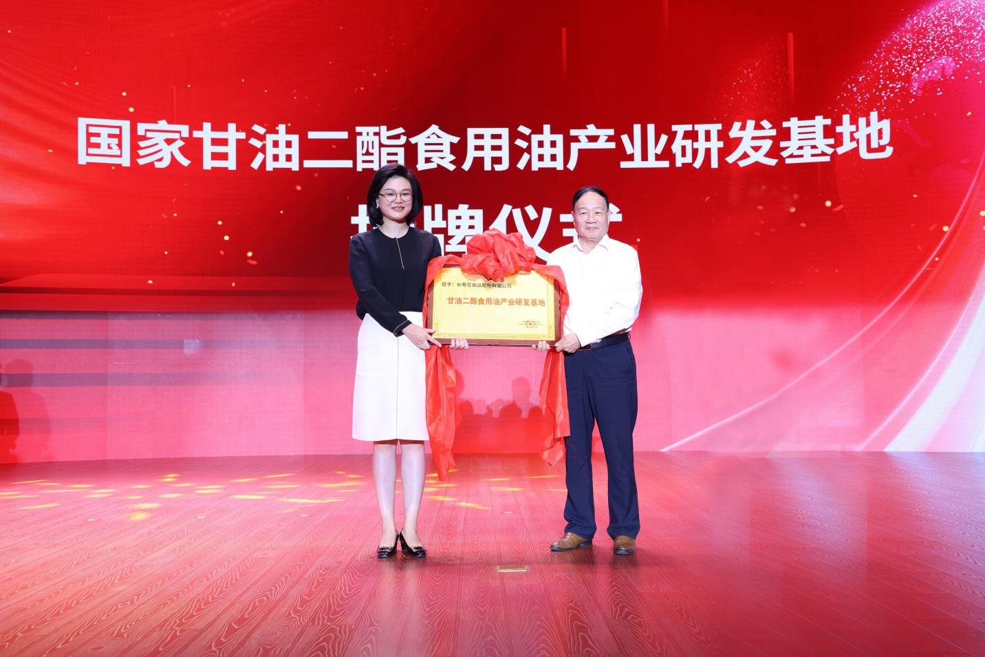 8月28日,“國家甘油二酯食用油產(chǎn)業(yè)研發(fā)基地”授牌儀式上,山東三星集團董事長、總裁王亞群從中國糧油學會油脂分會會長何東平手中接過授牌,標志著基地正式成立并落戶長壽花,以此為新起點,長壽花也將在功能性健康食用油產(chǎn)業(yè)領域再邁新征程,持續(xù)深耕健康產(chǎn)業(yè),助力健康中國戰(zhàn)略。