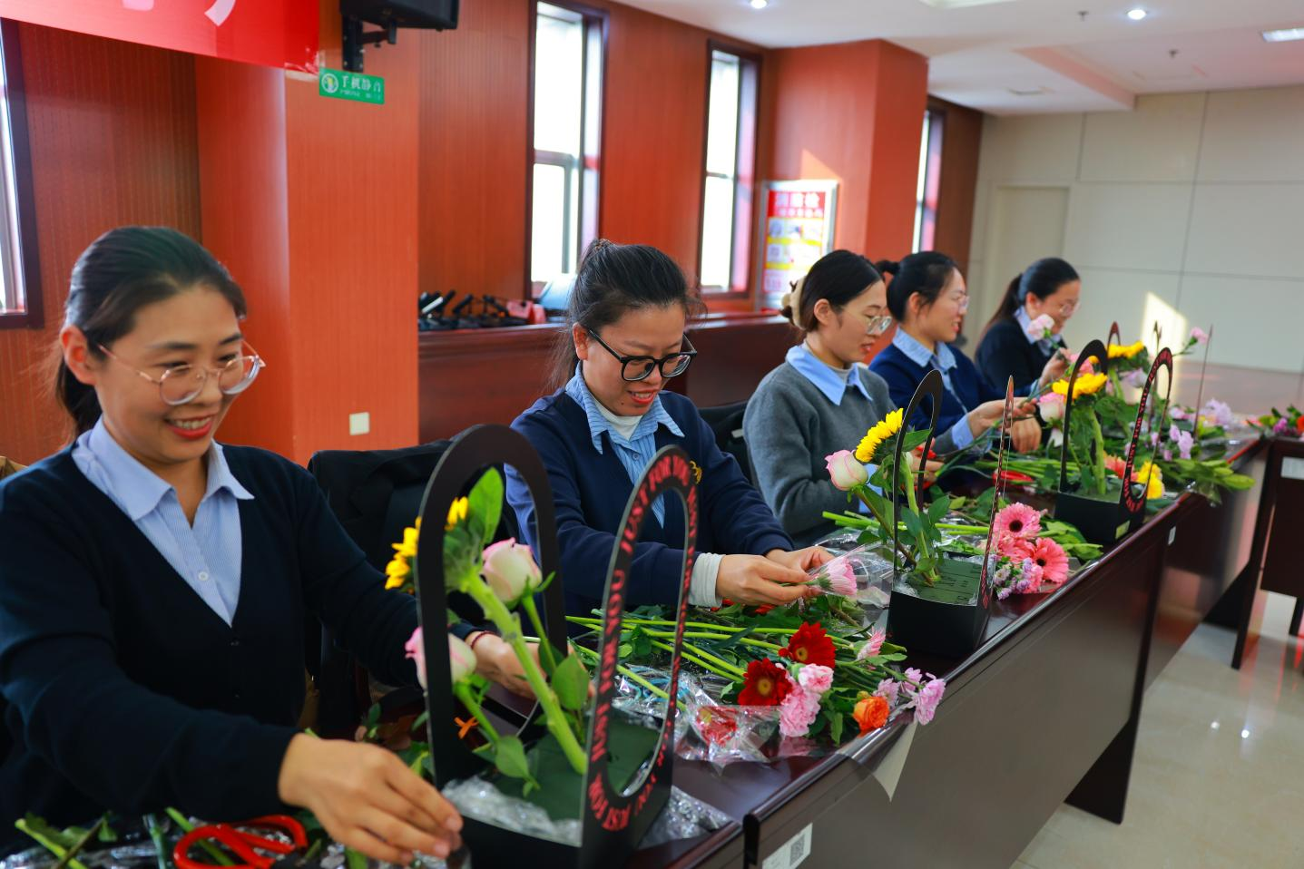 活動(dòng)現(xiàn)場(chǎng),專業(yè)花藝?yán)蠋煘榇蠹以敿?xì)講解了花卉知識(shí)、插花技巧和藝術(shù)構(gòu)圖。女員工們聽得津津有味,從花材的選擇與處理,到色彩搭配和造型設(shè)計(jì),不時(shí)提出問題,與花藝師積極互動(dòng)。