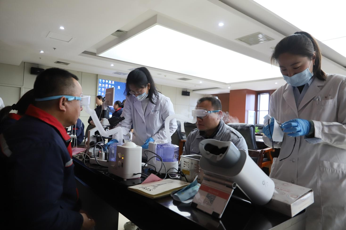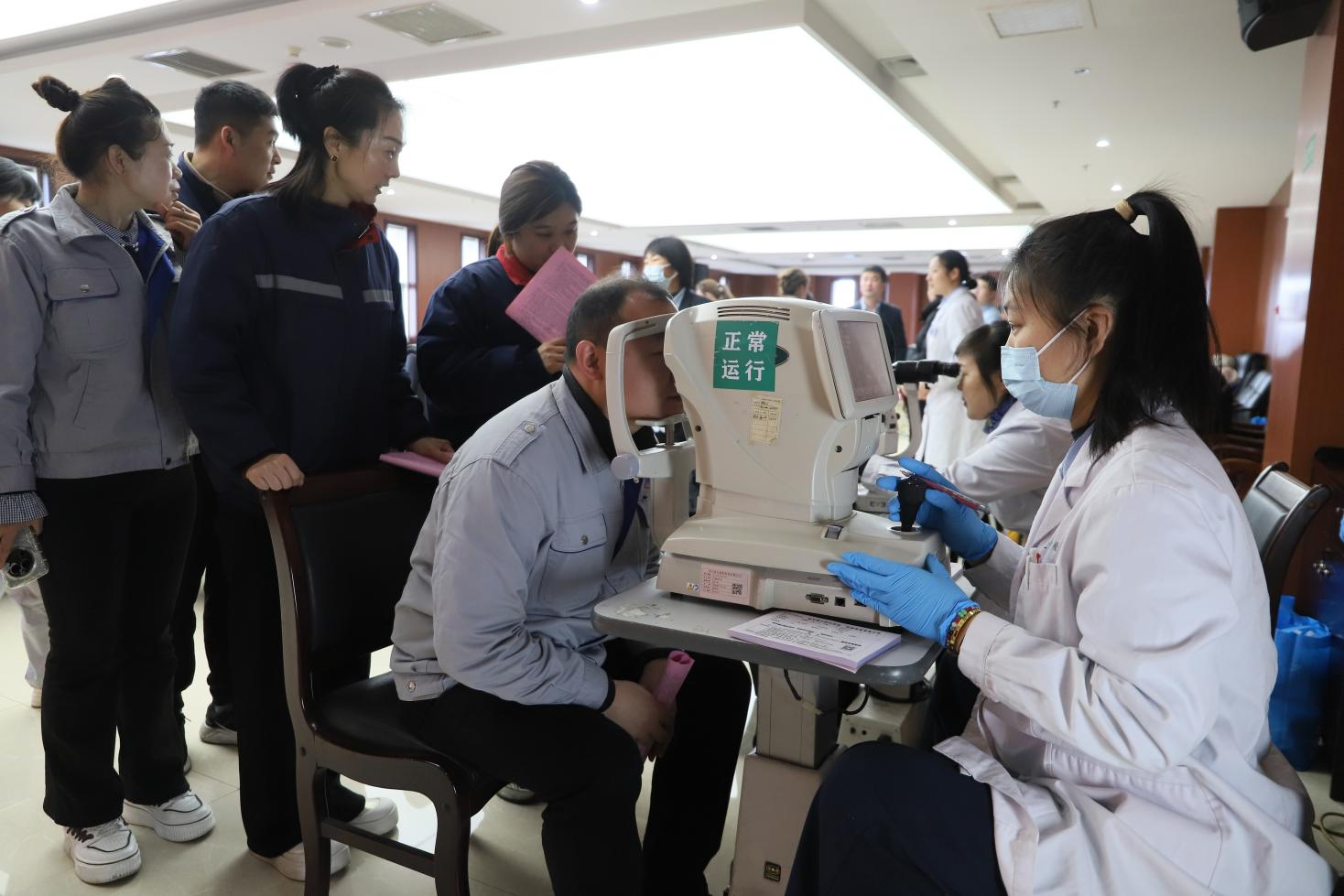 眼科醫(yī)務(wù)人員為職工講解了預(yù)防近視、健康用眼、視力矯正的相關(guān)知識(shí),并為職工提供了視力測(cè)試、眼壓測(cè)量、眼底檢查等眼部檢查服務(wù)。部分長(zhǎng)期使用電腦工作的員工還體驗(yàn)了干眼霧化熏蒸治療,有效緩解了眼睛的緊張工作狀態(tài)。