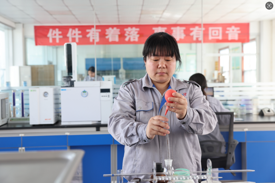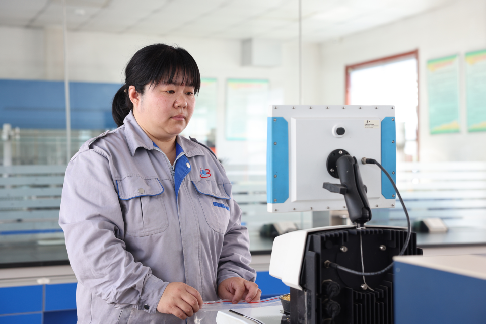 每天清晨,白宗英總是最早到達(dá)質(zhì)檢科室,準(zhǔn)備好一天的檢測(cè)工具與記錄表格。對(duì)于玉米胚芽的質(zhì)檢,她如同一位嚴(yán)苛的“選美評(píng)委”。檢測(cè)臺(tái)上,她熟練操作設(shè)備儀器,精準(zhǔn)獲取玉米胚芽中的水分含量、含油率等指標(biāo)數(shù)據(jù),通過(guò)專(zhuān)業(yè)的萃取與計(jì)算,確保每一批次的玉米胚芽都能為優(yōu)質(zhì)油品的產(chǎn)出奠定基礎(chǔ)。