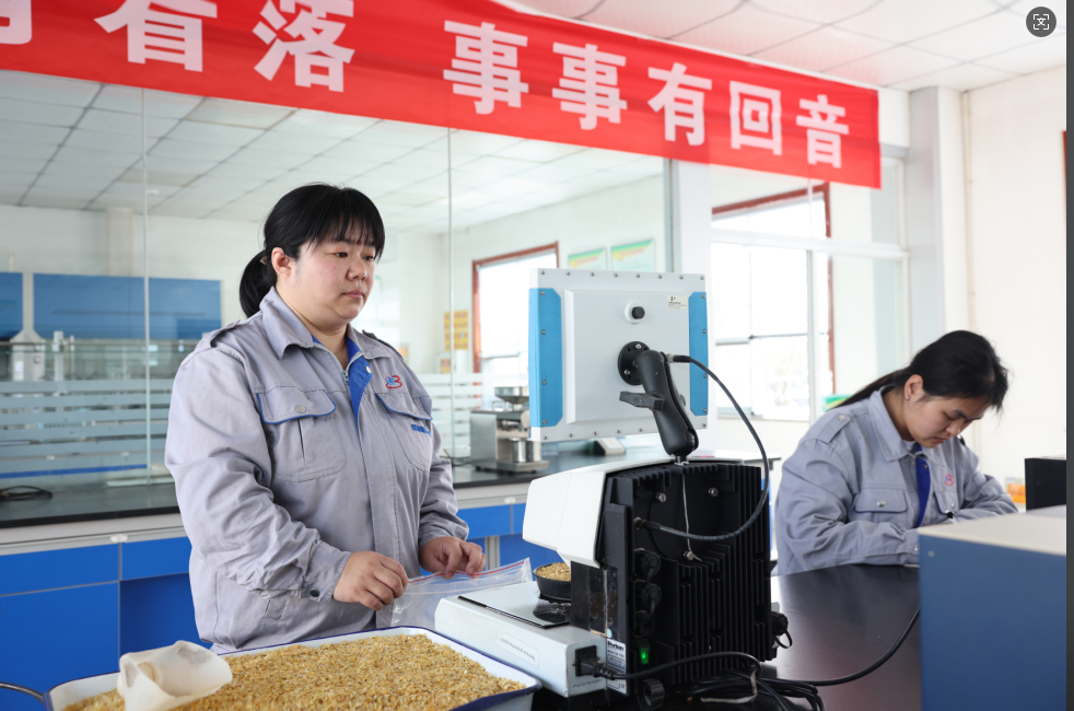 每天清晨,白宗英總是最早到達(dá)質(zhì)檢科室,準(zhǔn)備好一天的檢測工具與記錄表格。對于玉米胚芽的質(zhì)檢,她如同一位嚴(yán)苛的“選美評委”。檢測臺上,她熟練操作設(shè)備儀器,精準(zhǔn)獲取玉米胚芽中的水分含量、含油率等指標(biāo)數(shù)據(jù),通過專業(yè)的萃取與計算,確保每一批次的玉米胚芽都能為優(yōu)質(zhì)油品的產(chǎn)出奠定基礎(chǔ)。