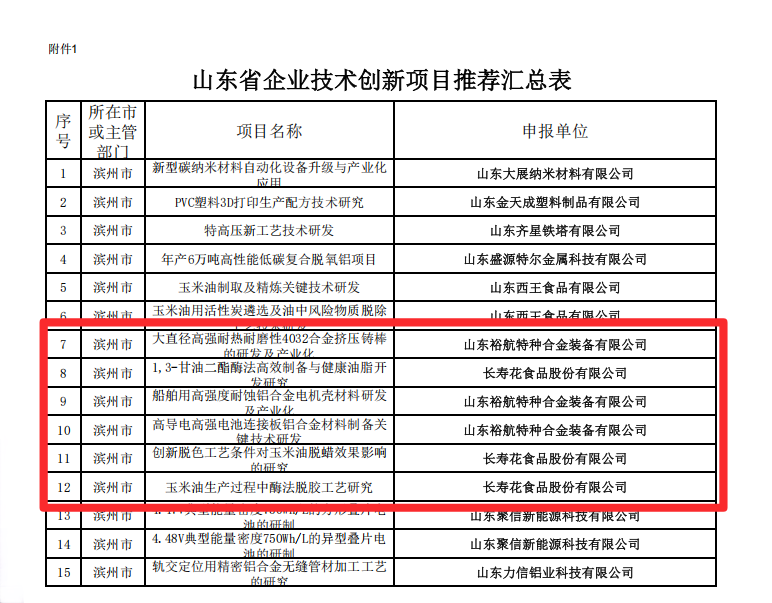 近日,山東省工業(yè)和信息化廳公布2025年山東省企業(yè)技術(shù)創(chuàng)新項(xiàng)目計(jì)劃(第一批),憑借深厚的技術(shù)積累與創(chuàng)新實(shí)力,山東三星集團(tuán)旗下長(zhǎng)壽花食品、裕航合金共六個(gè)項(xiàng)目成功入選,為企業(yè)創(chuàng)新發(fā)展注入強(qiáng)勁動(dòng)能。