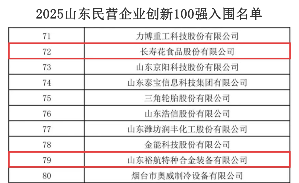 近日,山東省工商聯(lián)發(fā)布2025山東民營(yíng)企業(yè)百?gòu)?qiáng)系列榜單入圍名單,山東三星集團(tuán)上榜山東民營(yíng)企業(yè)200強(qiáng),位列第80位,較去年位次提升12位。集團(tuán)旗下長(zhǎng)壽花食品、裕航合金公司同時(shí)上榜山東民營(yíng)企業(yè)創(chuàng)新100強(qiáng),連續(xù)上榜民企百?gòu)?qiáng)榜單彰顯了企業(yè)在綜合實(shí)力、科創(chuàng)能力及發(fā)展?jié)摿Φ确矫娴膹?qiáng)勁韌性和勢(shì)頭。