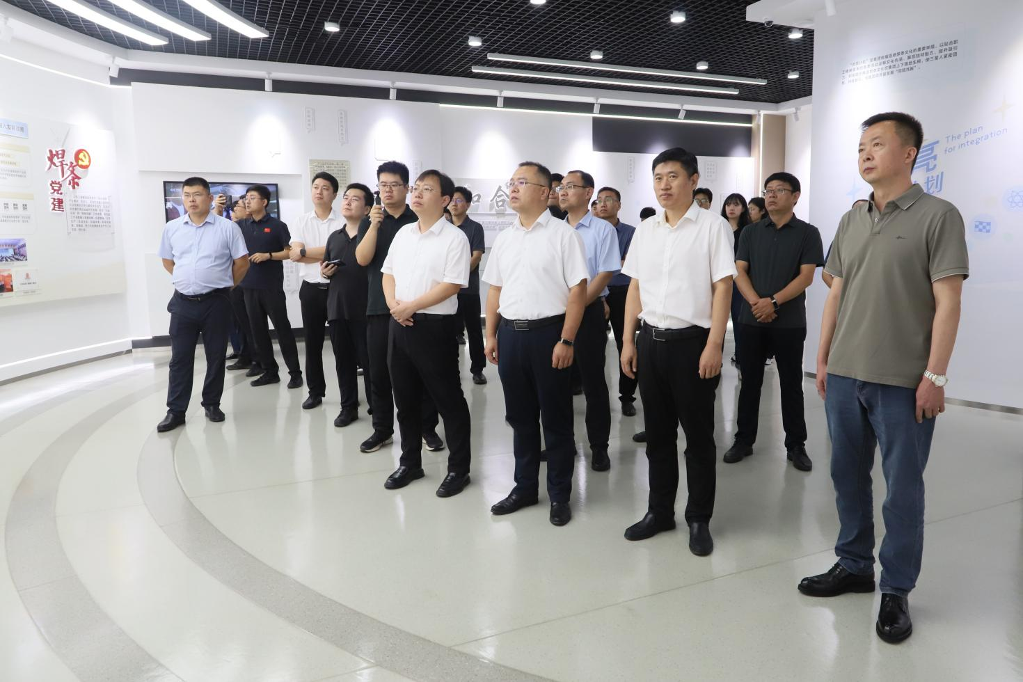 在集團文化中心,調(diào)研領(lǐng)導實地參觀了企業(yè)發(fā)展歷程、主導產(chǎn)業(yè)及黨建文化展區(qū),認真聽取了企業(yè)提煉黨建工作理念、熔鑄特色黨建品牌、打造黨建文化陣地的情況介紹,真切感受到企業(yè)“焊條黨建”品牌和“五融雙強”工作體系的強大紅色內(nèi)核。