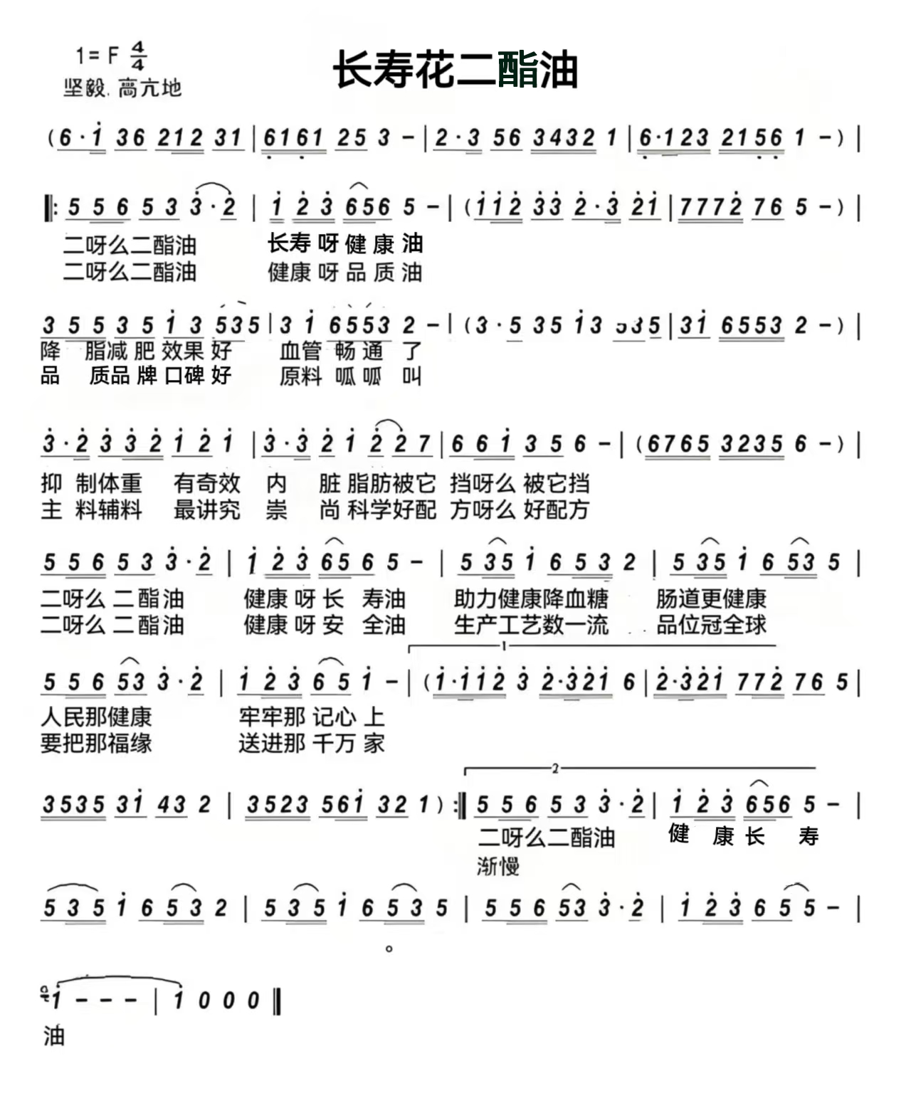 “二呀么二酯油,長(zhǎng)壽呀健康油……”,這是長(zhǎng)壽花桐廬公司近日剛剛收到的來(lái)自客戶創(chuàng)作的歌曲《長(zhǎng)壽花二酯油》,無(wú)論是堅(jiān)毅高亢的旋律,還是真情實(shí)感的歌詞,展現(xiàn)出的是創(chuàng)作者對(duì)長(zhǎng)壽花品牌的認(rèn)可信任和對(duì)“二酯油”產(chǎn)品發(fā)自內(nèi)心的喜愛(ài)。